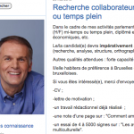 Vous êtes jeune, dynamique, vous cherchez un boulot ? Alors, j’ai du taf pour vous ! Allez vite sur le blog d’Alain Destexhe (« Basta le politiquement correct » — ça sonne un peu comme du Zemmour amélioré, ah ! quel bel esprit cet Alain) et répondez à son offre d’emploi pour un-e collaborateur/trice mi-temps OU plein temps. Au choix… Enfin pas tout à fait. Je me suis laissé dire que ce serait mi-temps si vous êtes un-e Flamand-e laïc-que franc-maçon-ne surproductif-ve, mais